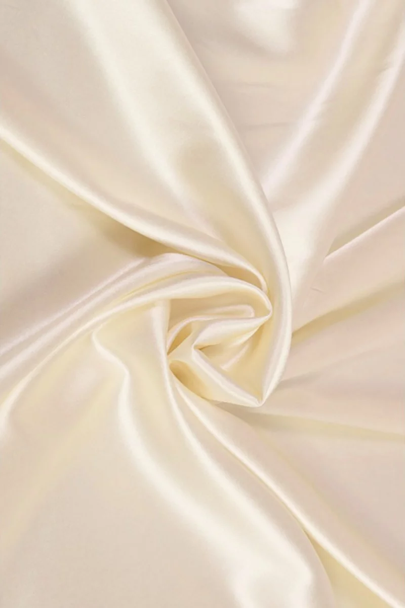 Satin aus 100 % natürlicher Seide ist ein zarter Stoff, der sich samtig anfühlt und einen zarten Glanz hat. Mit ihm lassen sich luftige Kleider, zarte Blusen, Schals, Schals zaubern. Es kann auch als Basis für zartere Seide und Spitze dienen