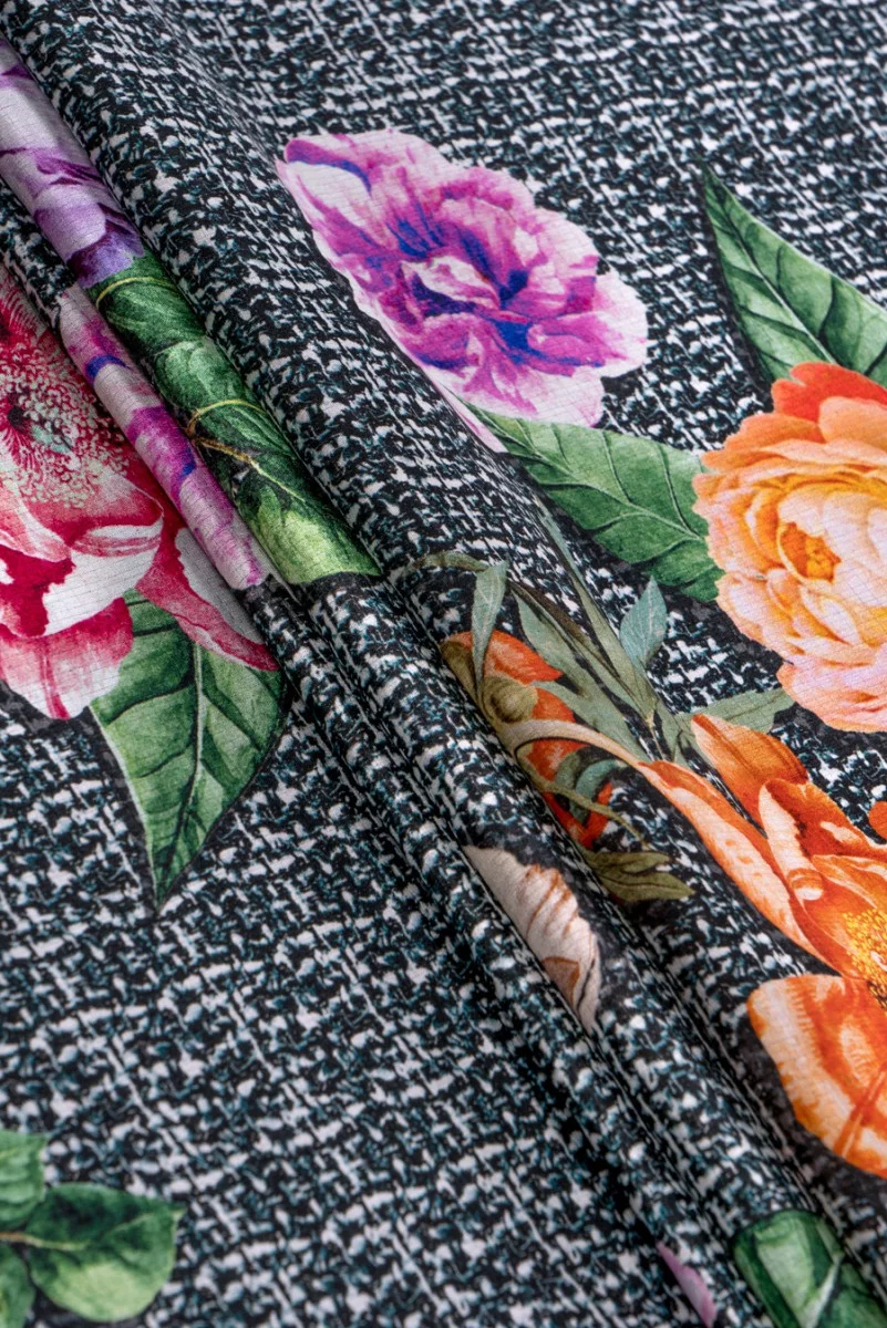 Jacquard-Seide, signiert von berühmten Modedesignern in großen, bunten Blumen auf weißem und schwarzem Hintergrund. Die Größe der Blüten beträgt ca. 10 cm. Der Stoff ist 100% natürlich, undurchsichtig, mit einem sehr zarten Glanz, schön arrangiert. Wir empfehlen, elegante Blusen, Kleider, Röcke, Tuniken daraus zu nähen