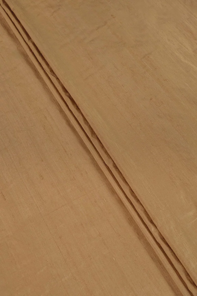 Italienischer Stoff 100% Seide Shantung Typ in goldener beiger Farbe. Shandong ist eine Art weicher Seidenstoff aus Rohgarn, mit charakteristischen unregelmäßig verteilten, klumpigen Perlen (dekorativ gefädeltes Garn) im Schuss. Es hat eine leicht starre, plastische Struktur.