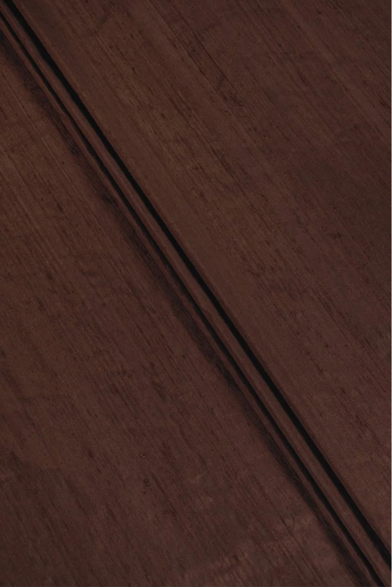 Italienischer Stoff aus 100% Shandong-Seide in schokoladenbrauner Farbe. Shandung ist eine Art Seidengewebe aus Rohgarn mit charakteristischen unregelmäßig verteilten, klumpigen Verdickungen.