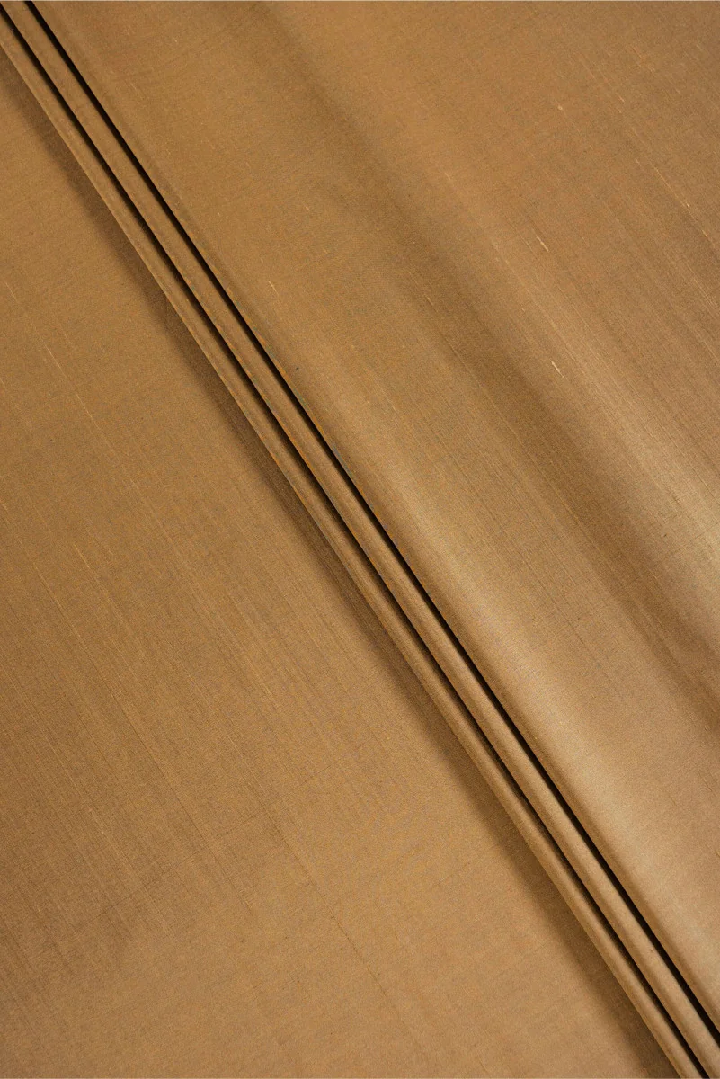 Italienischer Stoff aus 100% Seide, gewebt aus zwei Garnfarben: Braun und Beigegold, die einen zweifarbigen Effekt erzeugen. Der Stoff ist glatter mit leichten Verdickungen.