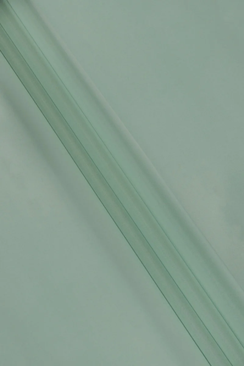 Italienischer Stoff aus 100% Seidenorganza in salbeifarbener Farbe. Natürlicher Seidenorganza ist ein dünner, transparenter, aber steifer Stoff mit einem zarten Glanz, der für Seidenstoffe charakteristisch ist. Perfekt zum Nähen eines Kleides, einer Bluse, eines Hemdes, eines Rocks.