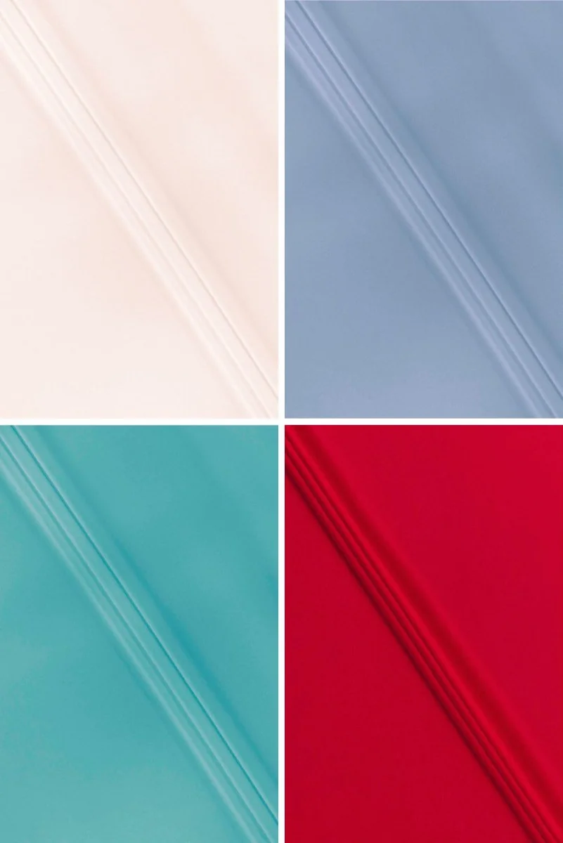 georgette handelt es sich um einen Stoff mit einer lockeren Leinwandbindung aus gedrehten Fäden, die ihm seine charakteristische, unregelmäßig faltige Oberfläche verleiht. Es ist ein luftiges und zartes, transparentes Material, es liegt auf eine schöne, fließende Weise.