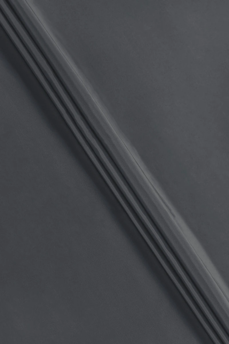 Italienischer Seiden-Polyester-Taftstoff, der aus zwei Garnfarben gewebt ist - grau und schwarz, die einen zweifarbigen Effekt erzeugen. Dickeres, steiferes Gewebe mit zartem Glanz