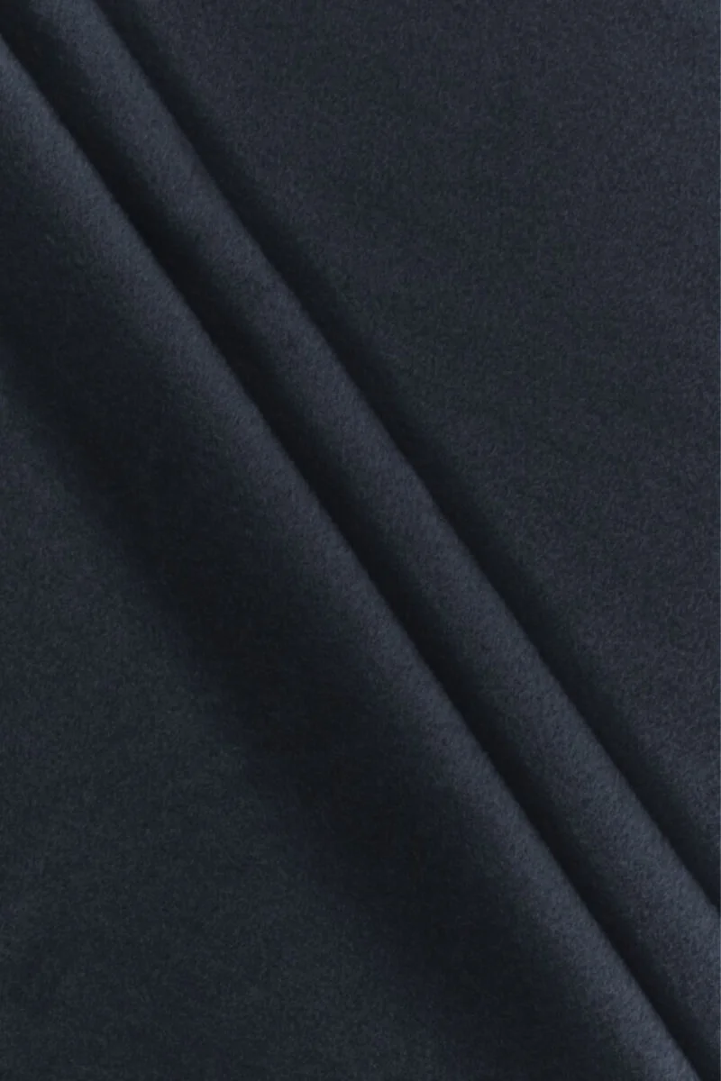 Italienischer Kostümstoff aus Seide und Baumwolle – doppelseitig. Auf der einen Seite dunkelblau und auf der anderen schwarz. Das Material ist mittlere Dicke mit einem zarten Borsten, weich und angenehm im Griff. Sie eignet sich perfekt zum Nähen von Herbst- und Winterkleidung wie Rock, Jacke oder dünner Jacke und Mantel. Eine fantastische Alternative zu Wollstoffen.