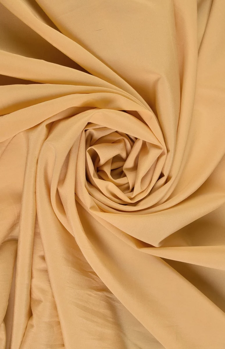Seidenkrepp ist ein zarter, dünner, aber blickdichter, halbmatter Stoff. Mit ihm lassen sich luftige Kleider, zarte Blusen, Schals, Schals zaubern. Das Foto ist in hellgelb.