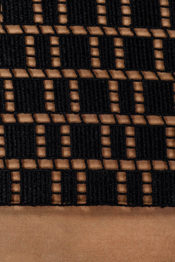 Italienische Guipure Spitze in Schwarz im Motiv unregelmäßiger Gehörknöchelchen (2,5 cm * 3 cm und 1 cm * 3 cm).