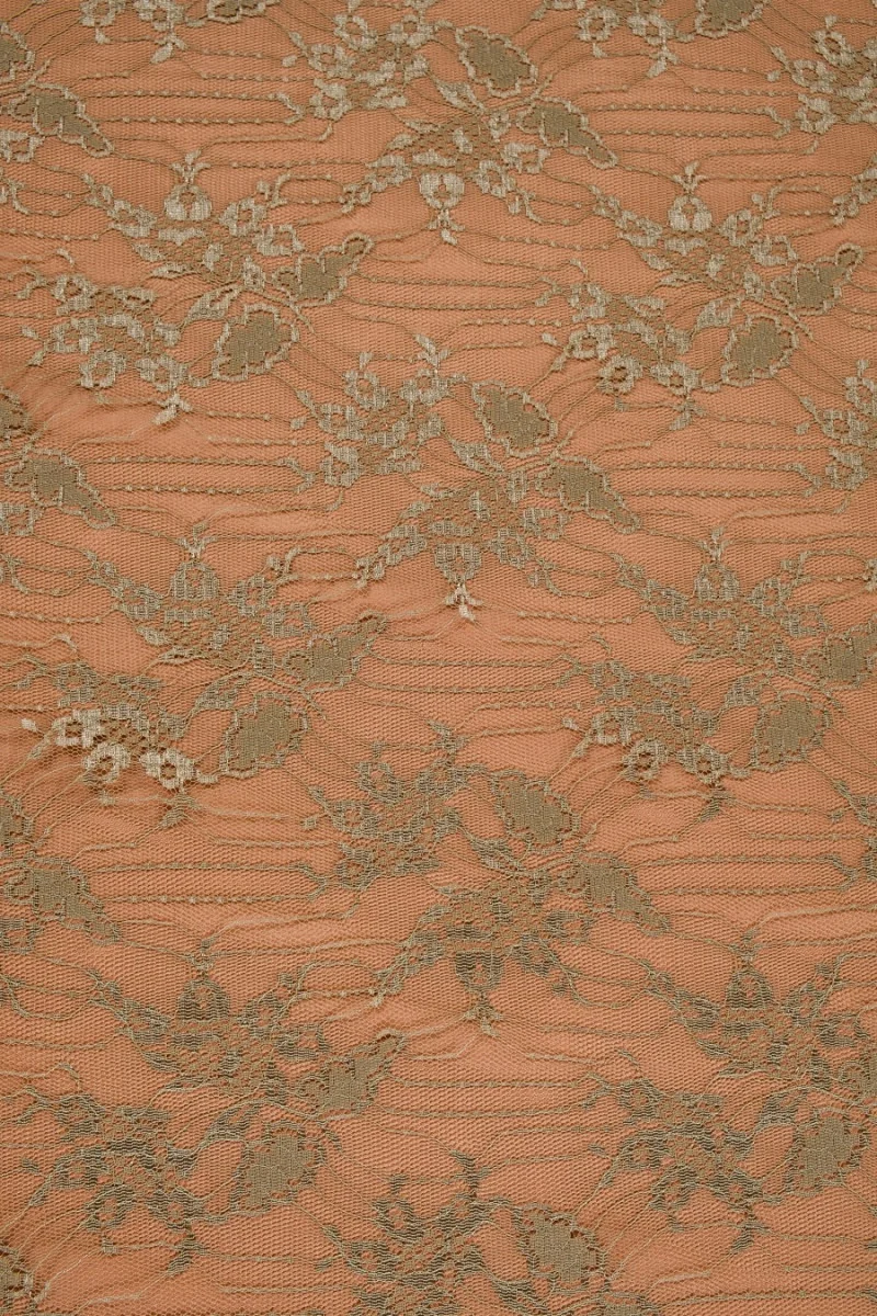 Zarte französische Spitze, dicht gewebt, in der Farbe Helloliv. Leicht elastisch mit einer Breite von 90cm. Perfekt für Kleider oder Blusen.