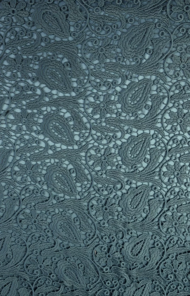 Das letzte Stück Guipure-Spitze in Seetürkis mit den Maßen: 75 cm* 120 cm.