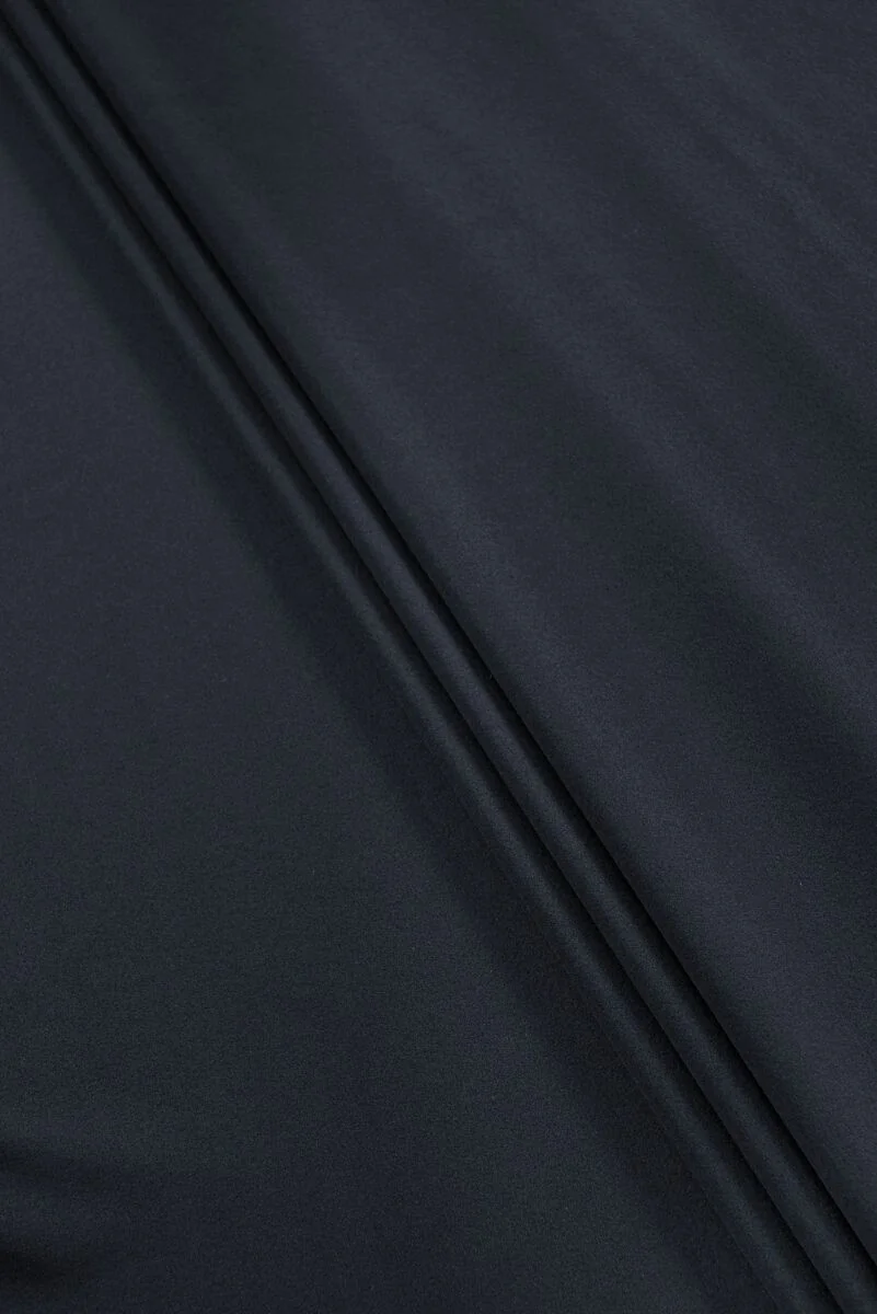 Italienischer Mantelstoff in dunklem Marineblau, gewebt aus natürlicher Wolle mit Zusatz von Polyamid. Wollstoffe eignen sich hervorragend für Oberbekleidung (Mantel, Jacke, Weste), da sie wärmen und gleichzeitig die Haut atmen lassen.