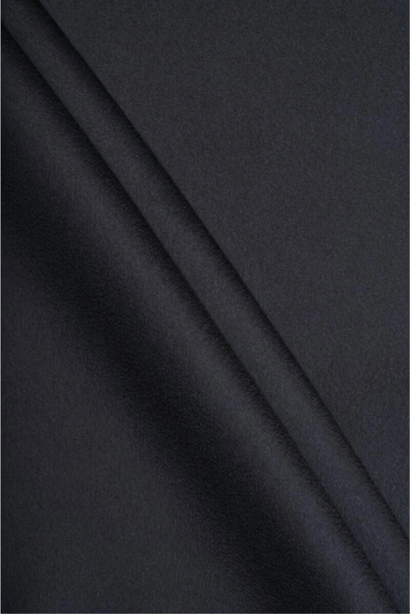 Italienischer Mantelstoff gewebt aus 100% natürlicher Wolle in dunklem Marineblau. Wollstoffe eignen sich hervorragend für Oberbekleidung (Mantel, Jacke, Weste), da sie wärmen und gleichzeitig die Haut atmen lassen.