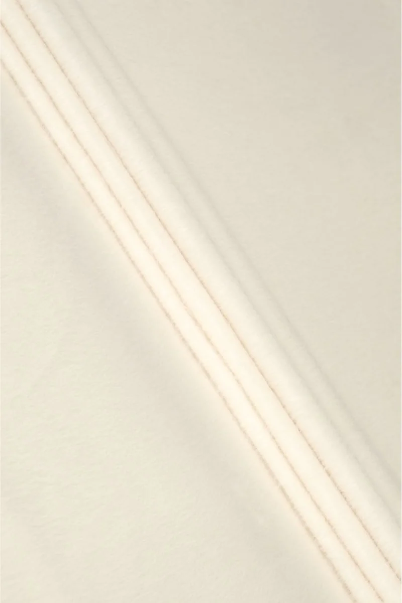 Italienischer cremefarbener Mantelstoff aus Alpaka und natürlicher Wolle. Der Stoff ist ideal für Oberbekleidung (Mantel, Jacke, Weste), da er wärmt und gleichzeitig die Haut atmen lässt. Alpakawolle hat sehr gute isolierende Eigenschaften, Alpakawolle ist wärmer als Schafwolle. Stoff mit leichtem Flor. Chemische Reinigung empfohlen.