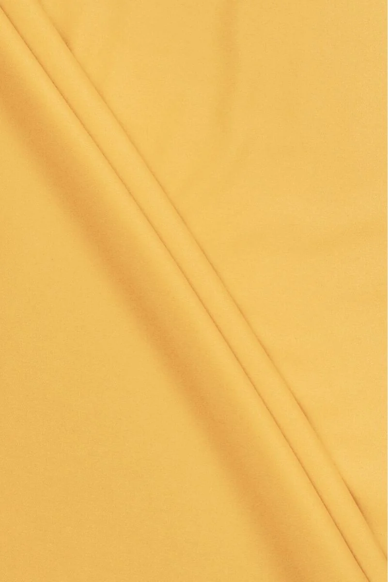 Italienischer Mantelstoff aus 100% natürlicher Wolle in Gelb gewebt. Der Stoff ist weich, unelastisch und fleischig. Wollstoffe eignen sich hervorragend für Oberbekleidung (Mantel, Jacke, Weste), da sie wärmen und gleichzeitig die Haut atmen lassen.