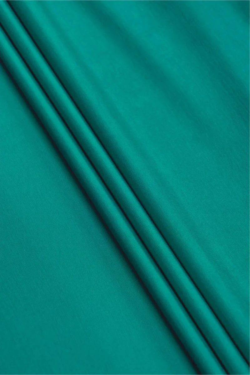 Viskose-Gestrick mit Zusatz von Elasthan ist ein dünnes, elastisches und fließendes Material. Das Gestrick ist glatt gewebt und fühlt sich äußerst angenehm an. Das Material besteht aus Garn natürlichen Ursprungs. Viskose-Gestrick ist hochelastisch. Die Fäden aus Viskosegarn sind extrem weich und fallen, während die elastischen Fasern dem Material Knitterfestigkeit und Elastizität verleihen.