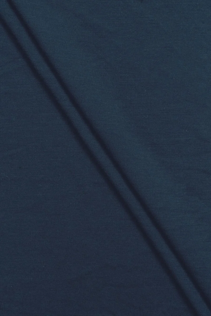Italienischer Wolljersey mit Zusatz von Polyamid und Elasthan in marineblauer Farbe. Strickstoff mit dichter Webart, mittlerer Dicke, matt und elastisch. Es eignet sich perfekt zum Nähen von Alltagskleidung wie Kleidern, Röcken, Tuniken, Blusen sowie leichten Pullovern oder Strickjacken.