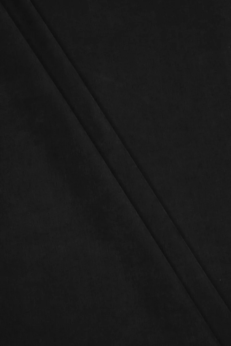 Cupro-Gestrick in Schwarz, gewebt aus einer Mischung aus Baumwolle, Polyester und Elasthan. Das Material ist fleischig, schwer, fließend, flexibel und sehr angenehm in der Hand. Es ist perfekt für Kleider, Röcke, Blusen, Jumpsuits.