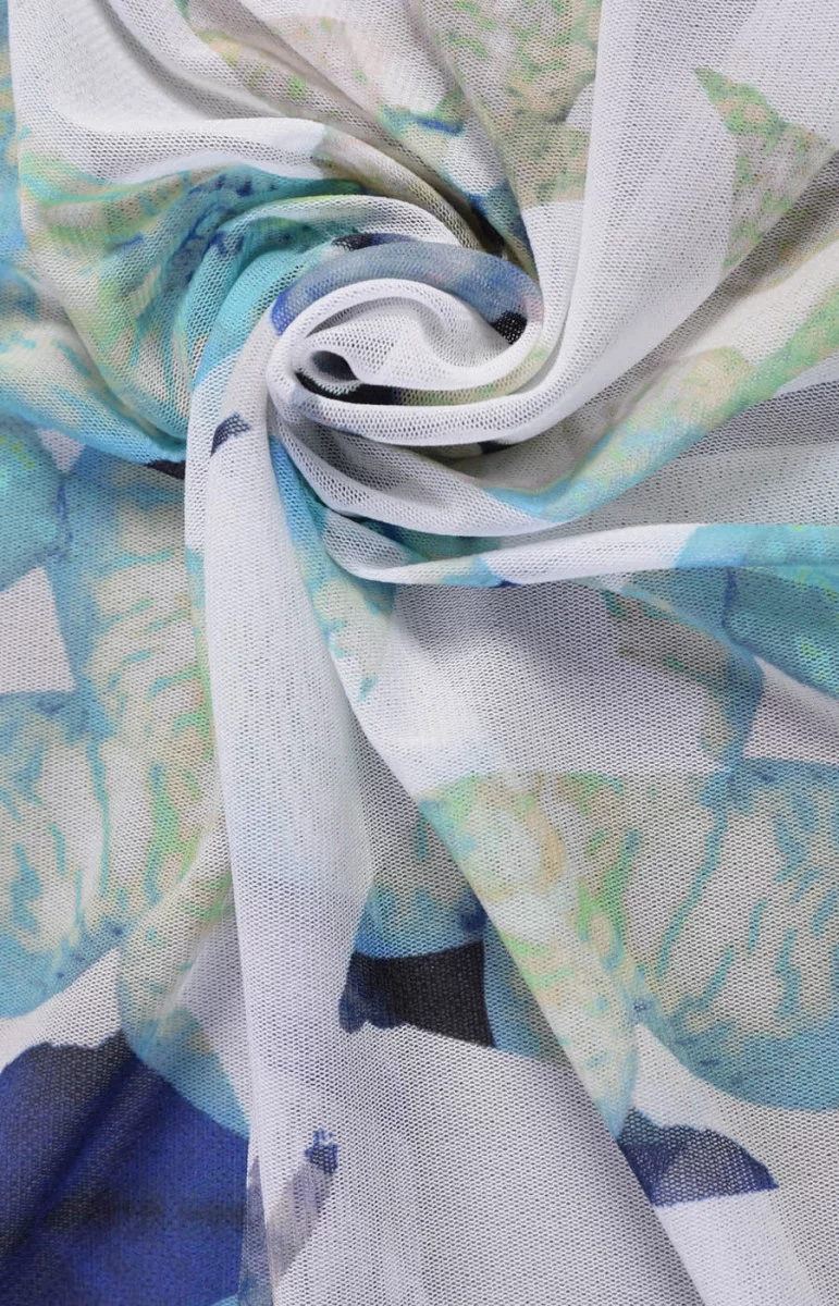 Elastischer Polyamid-Tüll im Druck. Leichter Stoff, perfekt für Kleider oder Blusen. Es erscheint im Coupon. Wir empfehlen, die Stoffmenge pro Umfang zu messen.