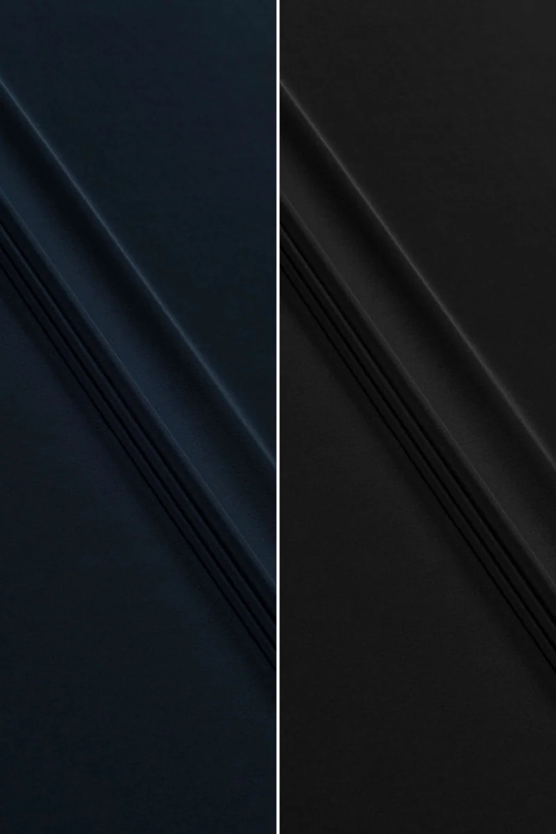 Italienischer Crêpe-Stoff aus 100% Viskose in zwei klassischen Farben: schwarz und dunkelblau.