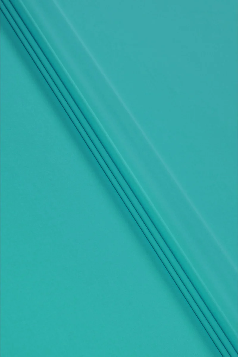 Italienischer Cadi-Kleiderstoff, gewebt aus 100% Viskose in Türkis. Der Stoff ist dünner, aber blickdicht, nicht elastisch in einer schönen, lebendigen Farbe. Es eignet sich perfekt zum Nähen eines eleganten Kleides, Rocks oder einer Bluse. Die 100% natürliche Zusammensetzung macht es auch zu einer schönen Option für Sommerkleidung.