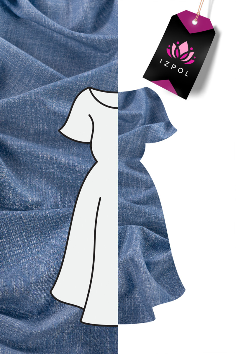 Italienisches Viskosegewebe in einer Beimischung von Polyester und Elasthan in der Farbe blauer Melange. Der Stoff ist weich, undurchsichtig, elastisch, das Gewebe ähnelt Leinen.