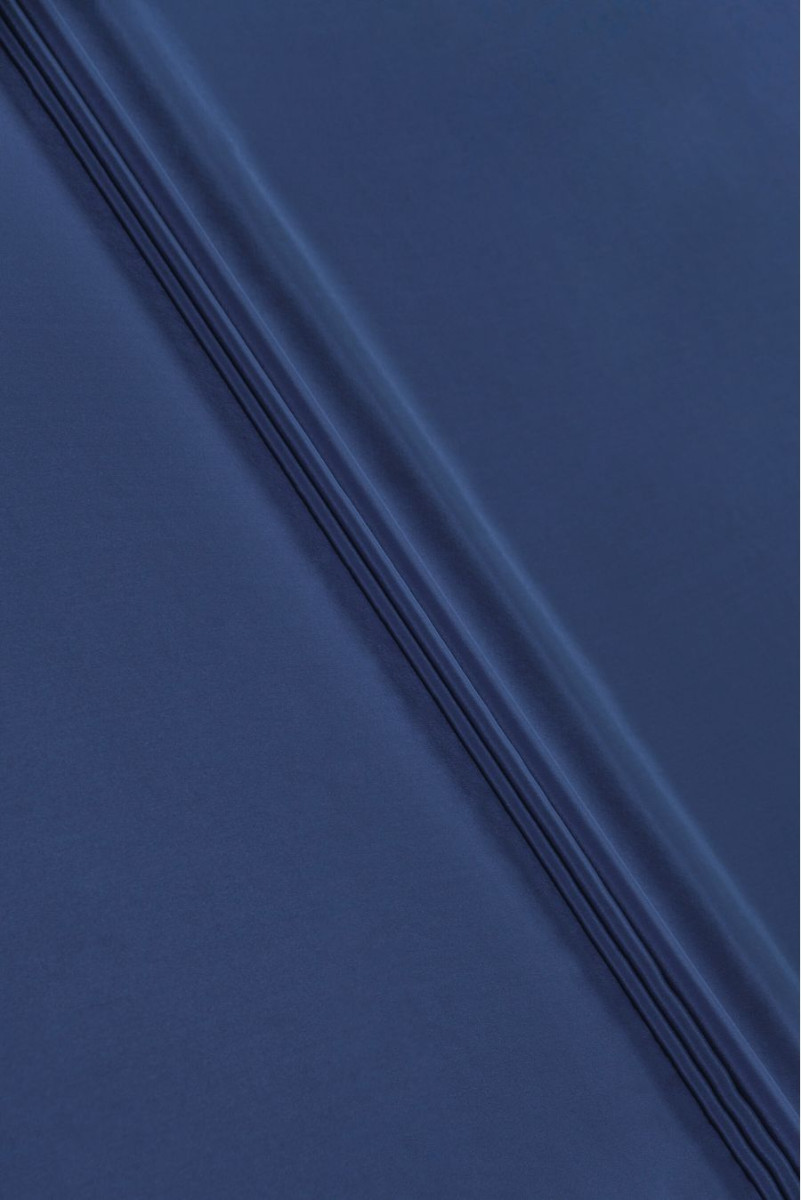 Italienischer Crêpe-Stoff, gewebt aus Acetat mit einer Beimischung von Naturseide in hellem Marineblau. Crêpe ist ein Stoff mit einer charakteristischen, halbmatten Oberfläche. Er hat ein zart gezwirntes Gewebe, das dem Stoff eine feine Struktur verleiht.